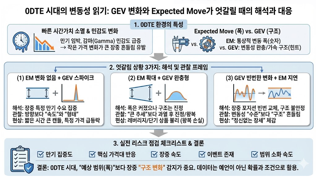 DTE 시대의 변동성 읽기: GEV 변화와 Expected Move가 엇갈릴 때 체크할 것들